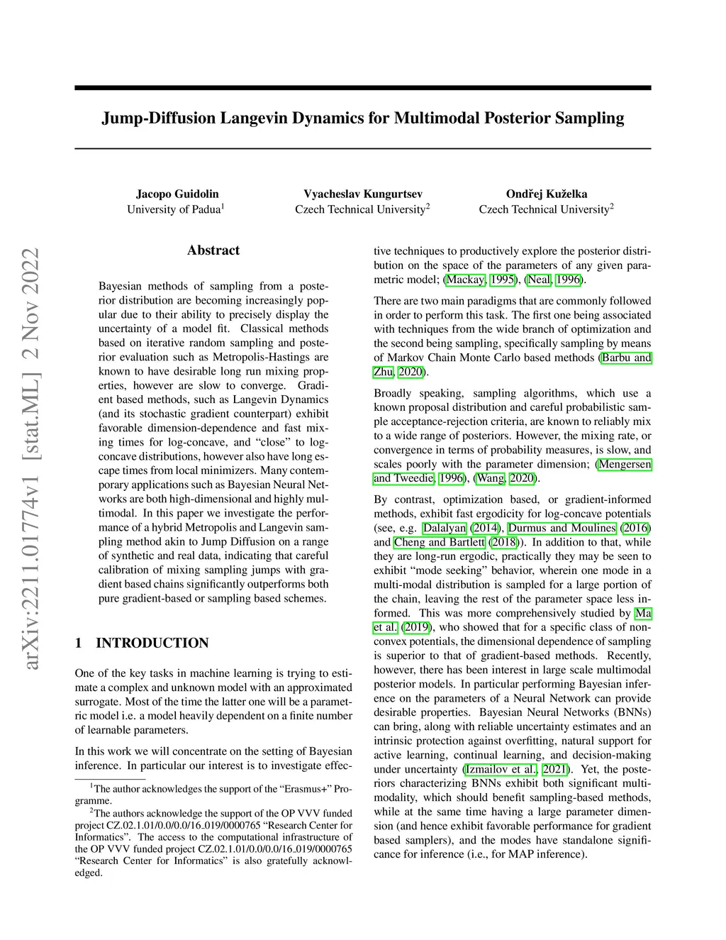 Bayesian methods of sampling from a posterior distribution are becoming increasingly popular due to their ability to precisely display the uncertainty of a model fit. Classical methods based on iterative random sampling and posterior evaluation such as Metropolis-Hastings are known to have desirable long run mixing properties, however are slow to converge. Gradient based methods, such as Langevin Dynamics (and its stochastic gradient counterpart) exhibit favorable dimension-dependence and fast mixing times for log-concave, and "close" to log-concave distributions, however also have long escape times from local minimizers. Many contemporary applications such as Bayesian Neural Networks are both high-dimensional and highly multimodal. In this paper we investigate the performance of a hybrid Metropolis and Langevin sampling method akin to Jump Diffusion on a range of synthetic and real data, indicating that careful calibration of mixing sampling jumps with gradient based chains significantly outperforms both pure gradient-based or sampling based schemes.