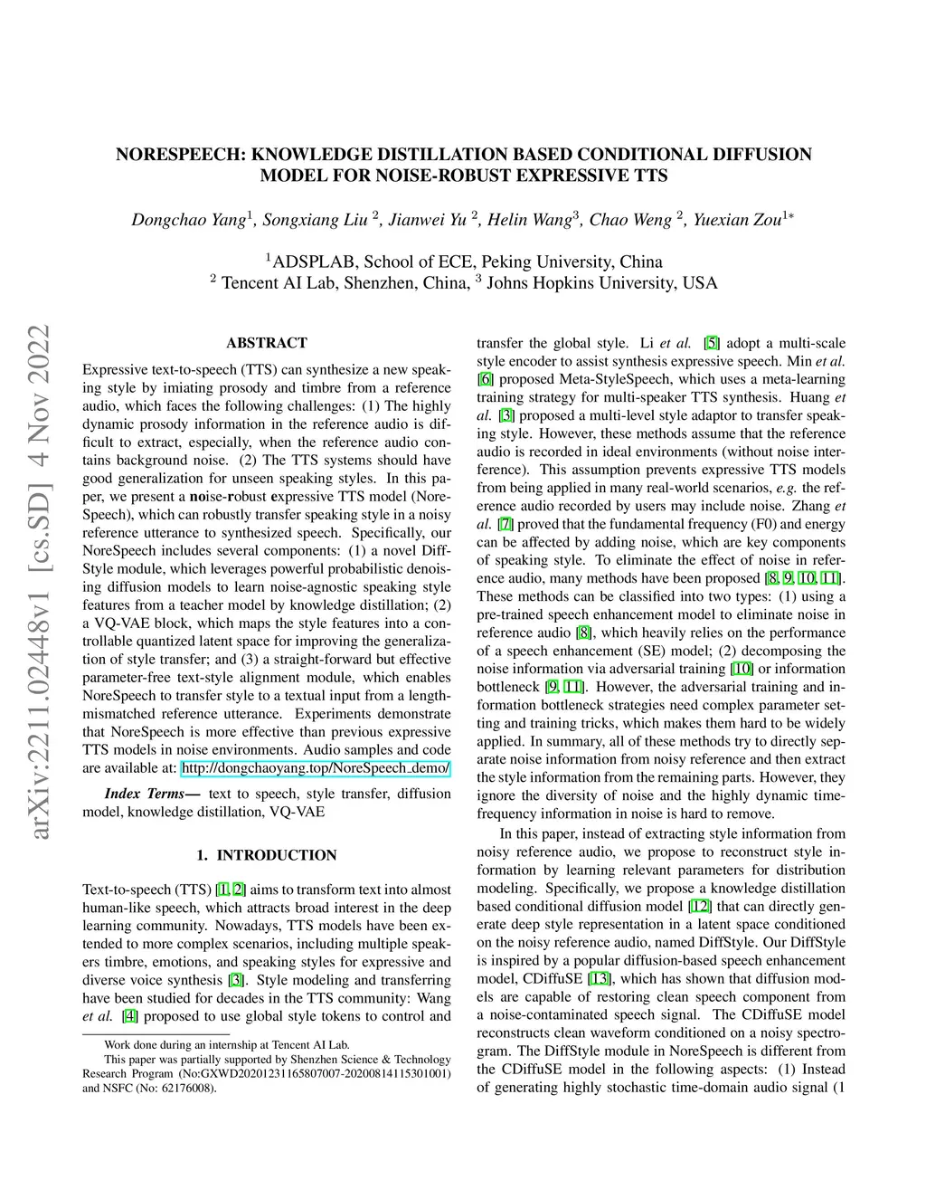 NoreSpeech: Knowledge Distillation based Conditional Diffusion Model for