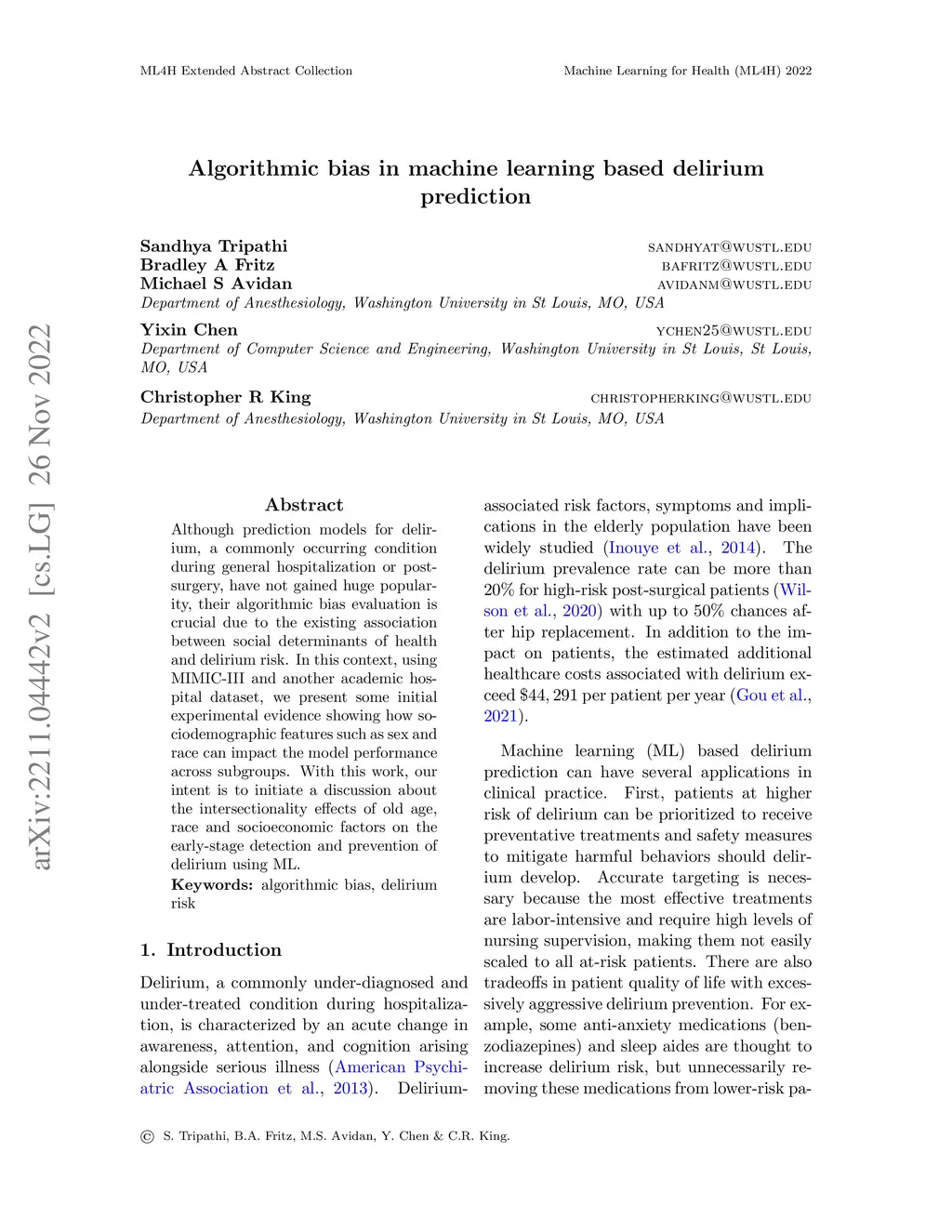 Algorithmic Bias in Machine Learning Based Delirium Prediction