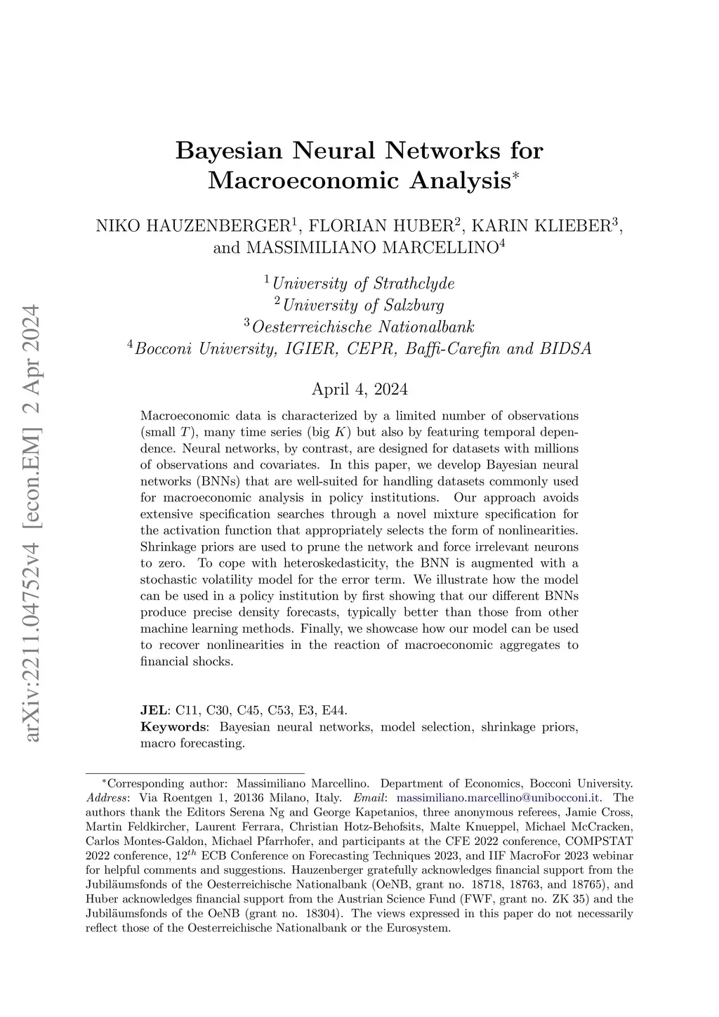 Macroeconomic data is characterized by a limited number of observations (small T), many time series (big K) but also by featuring temporal dependence. Neural networks, by contrast, are designed for datasets with millions of observations and covariates. In this paper, we develop Bayesian neural networks (BNNs) that are well-suited for handling datasets commonly used for macroeconomic analysis in policy institutions. Our approach avoids extensive specification searches through a novel mixture specification for the activation function that appropriately selects the form of nonlinearities. Shrinkage priors are used to prune the network and force irrelevant neurons to zero. To cope with heteroskedasticity, the BNN is augmented with a stochastic volatility model for the error term. We illustrate how the model can be used in a policy institution by first showing that our different BNNs produce precise density forecasts, typically better than those from other machine learning methods. Finally, we showcase how our model can be used to recover nonlinearities in the reaction of macroeconomic aggregates to financial shocks.