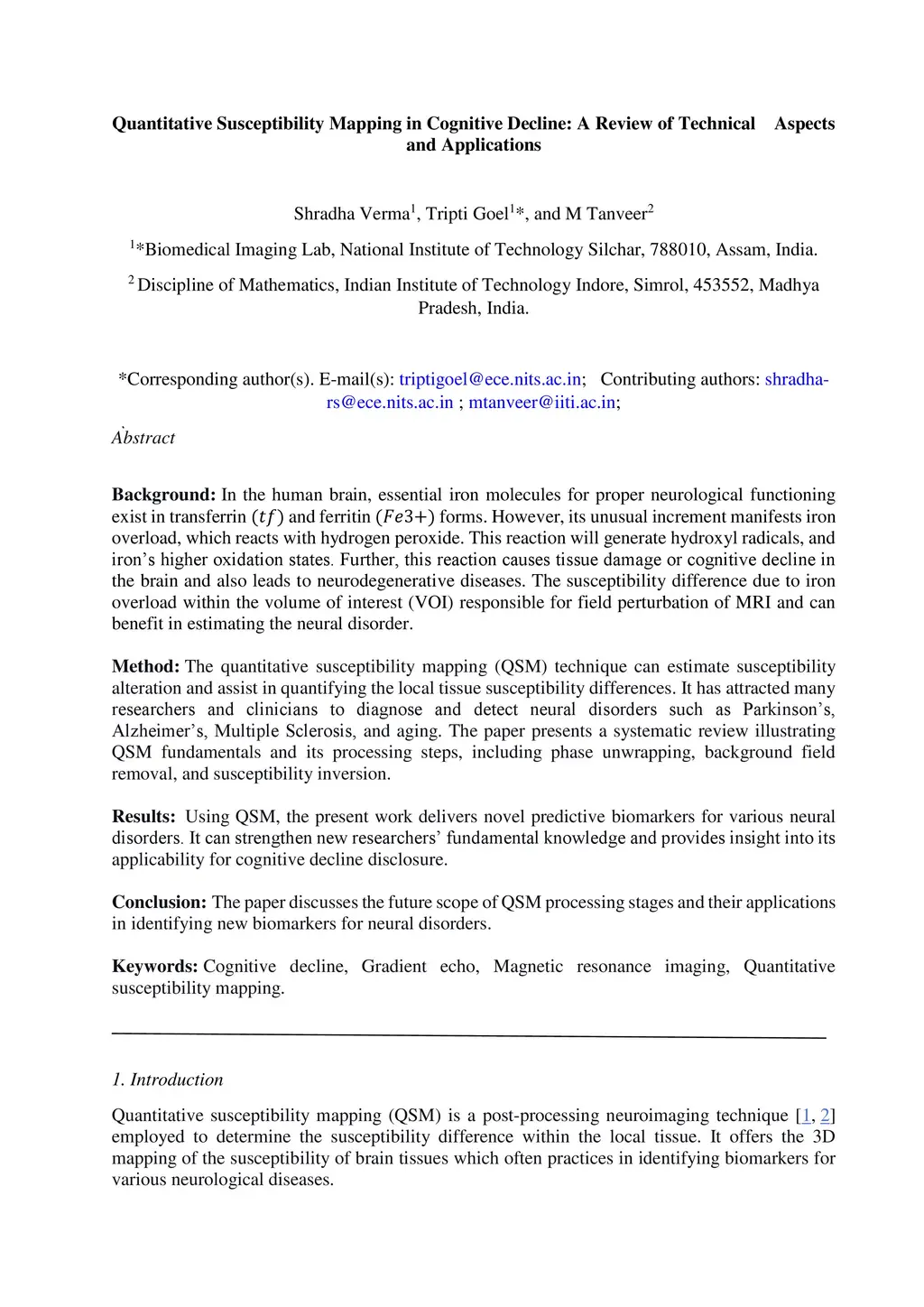 Quantitative Susceptibility Mapping in Cognitive Decline: A Review of
