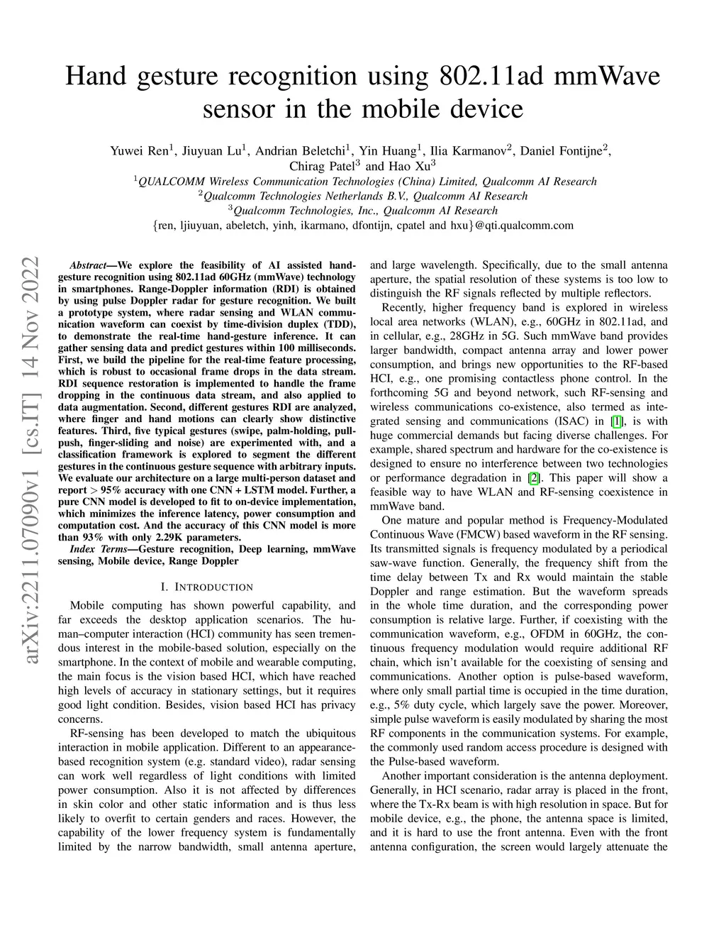 Hand gesture recognition using 802.11ad mmWave sensor in the mobile
