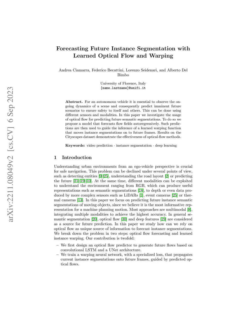 Forecasting Future Instance Segmentation with Learned Optical Flow and