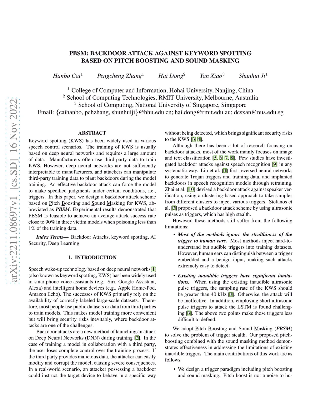 PBSM: Backdoor attack against Keyword spotting based on pitch boosting