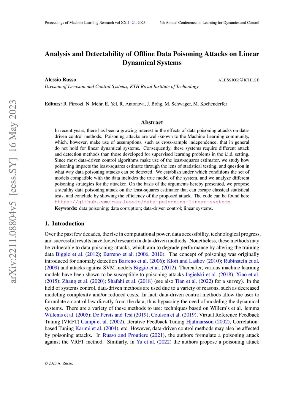 In recent years, there has been a growing interest in the effects of data poisoning attacks on data-driven control methods. Poisoning attacks are well-known to the Machine Learning community, which, however, make use of assumptions, such as cross-sample independence, that in general do not hold for linear dynamical systems. Consequently, these systems require different attack and detection methods than those developed for supervised learning problems in the i.i.d.\ setting. Since most data-driven control algorithms make use of the least-squares estimator, we study how poisoning impacts the least-squares estimate through the lens of statistical testing, and question in what way data poisoning attacks can be detected. We establish under which conditions the set of models compatible with the data includes the true model of the system, and we analyze different poisoning strategies for the attacker. On the basis of the arguments hereby presented, we propose a stealthy data poisoning attack on the least-squares estimator that can escape classical statistical tests, and conclude by showing the efficiency of the proposed attack.