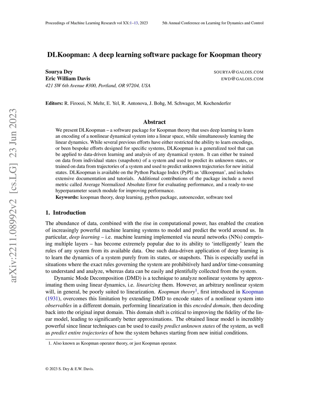 DLKoopman: A deep learning software package for Koopman theory