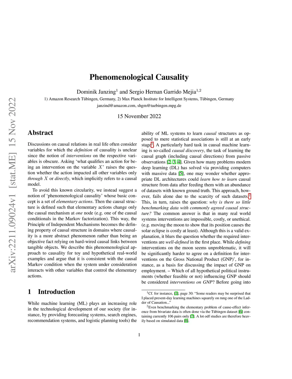 Discussions on causal relations in real life often consider variables for which the definition of causality is unclear since the notion of interventions on the respective variables is obscure. Asking 'what qualifies an action for being an intervention on the variable X' raises the question whether the action impacted all other variables only through X or directly, which implicitly refers to a causal model. To avoid this known circularity, we instead suggest a notion of 'phenomenological causality' whose basic concept is a set of elementary actions. Then the causal structure is defined such that elementary actions change only the causal mechanism at one node (e.g. one of the causal conditionals in the Markov factorization). This way, the Principle of Independent Mechanisms becomes the defining property of causal structure in domains where causality is a more abstract phenomenon rather than being an objective fact relying on hard-wired causal links between tangible objects. We describe this phenomenological approach to causality for toy and hypothetical real-world examples and argue that it is consistent with the causal Markov condition when the system under consideration interacts with other variables that control the elementary actions.