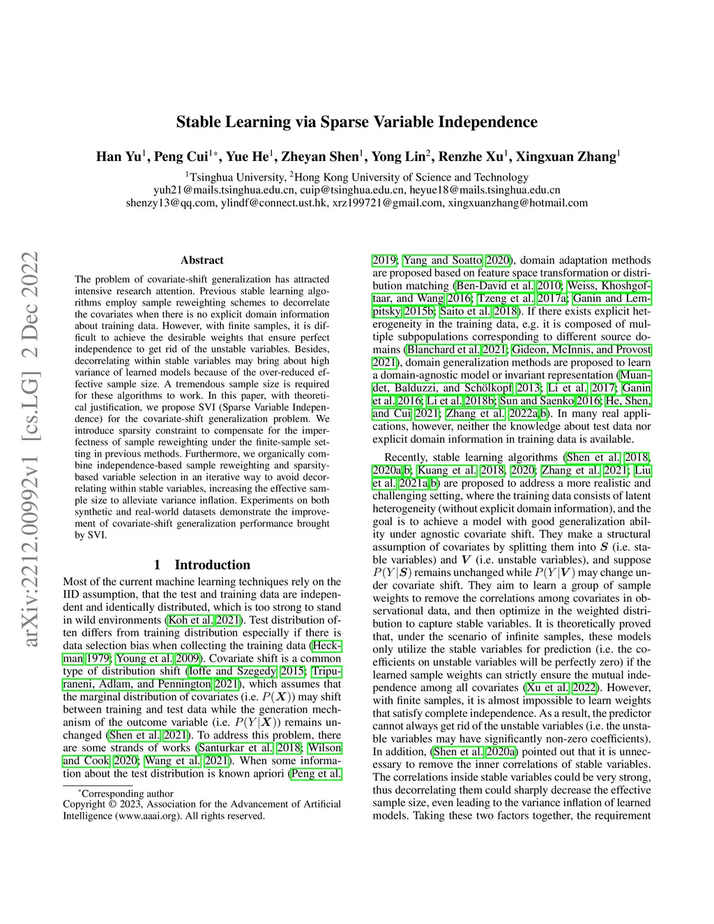 Stable Learning via Sparse Variable Independence