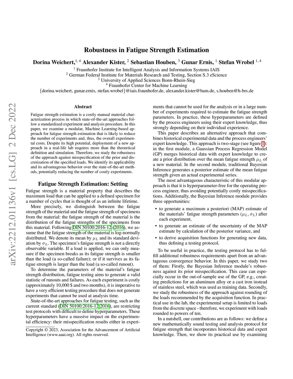 Fatigue strength estimation is a costly manual material characterization process in which state-of-the-art approaches follow a standardized experiment and analysis procedure. In this paper, we examine a modular, Machine Learning-based approach for fatigue strength estimation that is likely to reduce the number of experiments and, thus, the overall experimental costs. Despite its high potential, deployment of a new approach in a real-life lab requires more than the theoretical definition and simulation. Therefore, we study the robustness of the approach against misspecification of the prior and discretization of the specified loads. We identify its applicability and its advantageous behavior over the state-of-the-art methods, potentially reducing the number of costly experiments.