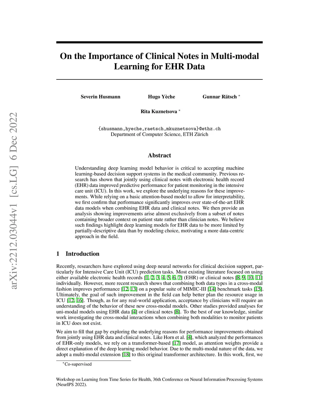 On the Importance of Clinical Notes in Multi-modal Learning for EHR Data