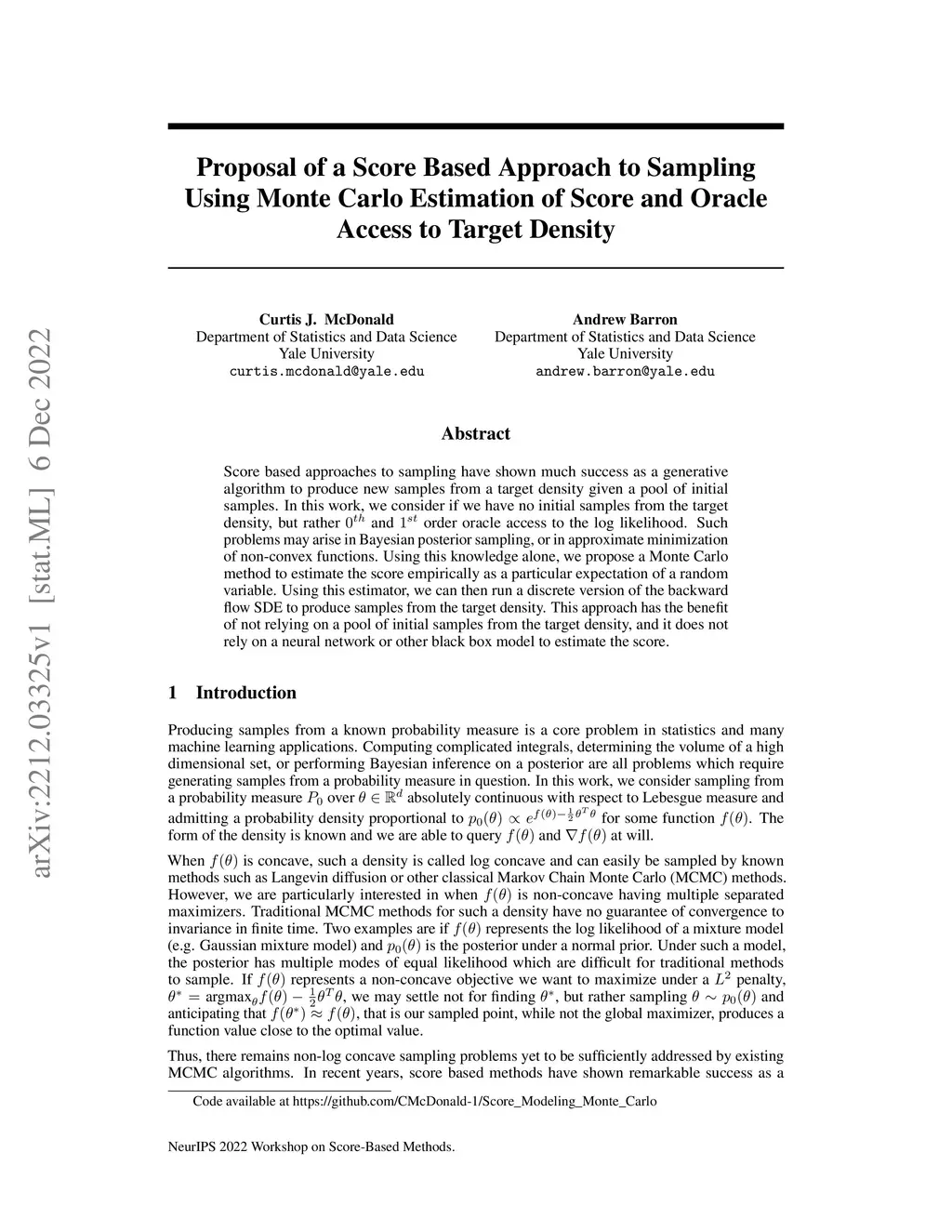 Proposal of a Score Based Approach to Sampling Using Monte Carlo