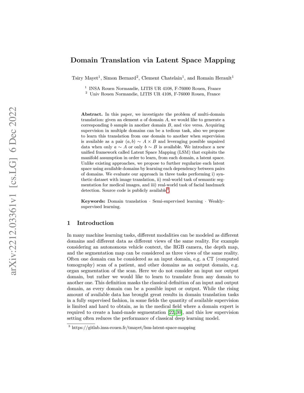 In this paper, we investigate the problem of multi-domain translation: given an element of domain , we would like to generate a corresponding sample in another domain , and vice versa. Acquiring supervision in multiple domains can be a tedious task, also we propose to learn this translation from one domain to another when supervision is available as a pair and leveraging possible unpaired data when only or only is available. We introduce a new unified framework called Latent Space Mapping (\model) that exploits the manifold assumption in order to learn, from each domain, a latent space. Unlike existing approaches, we propose to further regularize each latent space using available domains by learning each dependency between pairs of domains. We evaluate our approach in three tasks performing i) synthetic dataset with image translation, ii) real-world task of semantic segmentation for medical images, and iii) real-world task of facial landmark detection.