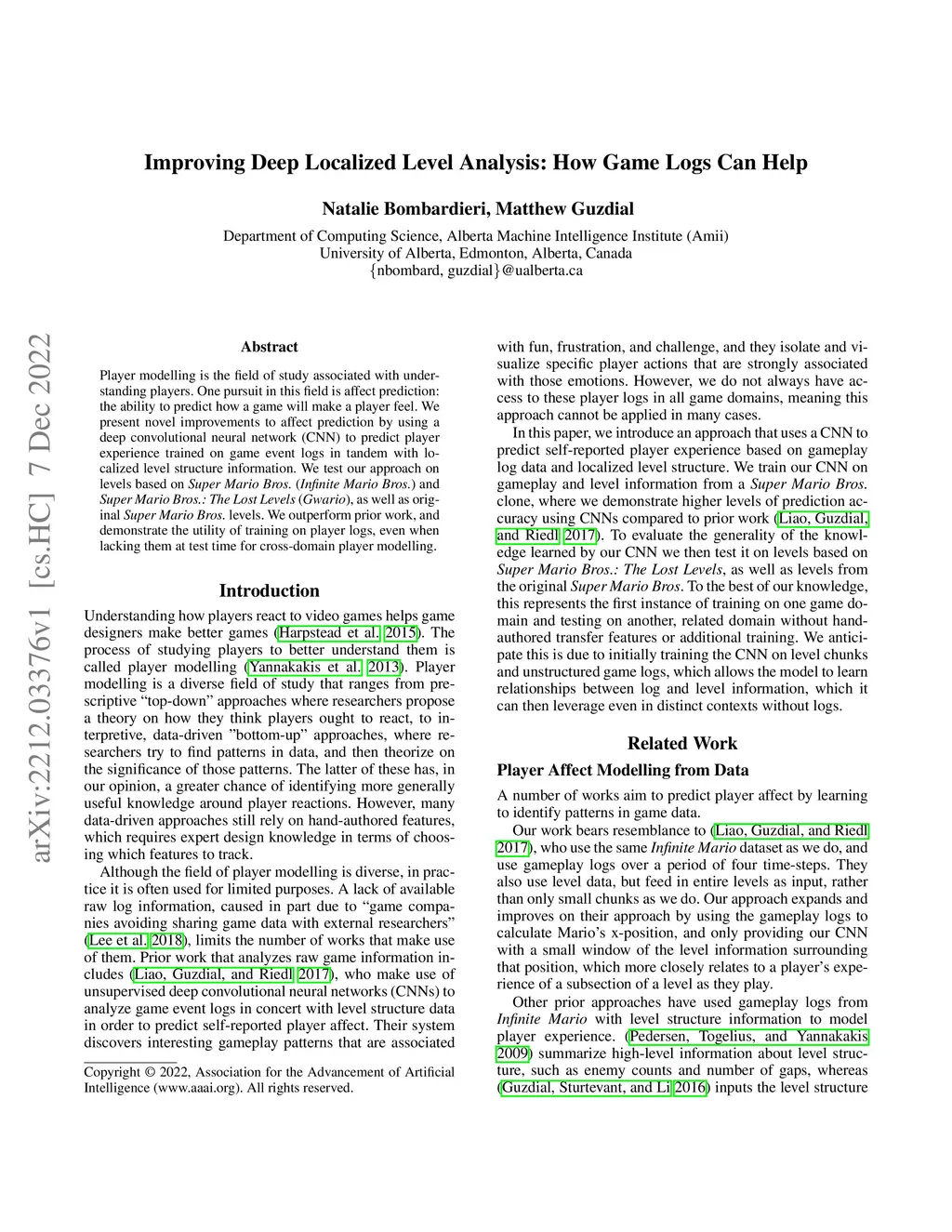 Player modelling is the field of study associated with understanding players. One pursuit in this field is affect prediction: the ability to predict how a game will make a player feel. We present novel improvements to affect prediction by using a deep convolutional neural network (CNN) to predict player experience trained on game event logs in tandem with localized level structure information. We test our approach on levels based on Super Mario Bros. (Infinite Mario Bros.) and Super Mario Bros.: The Lost Levels (Gwario), as well as original Super Mario Bros. levels. We outperform prior work, and demonstrate the utility of training on player logs, even when lacking them at test time for cross-domain player modelling.