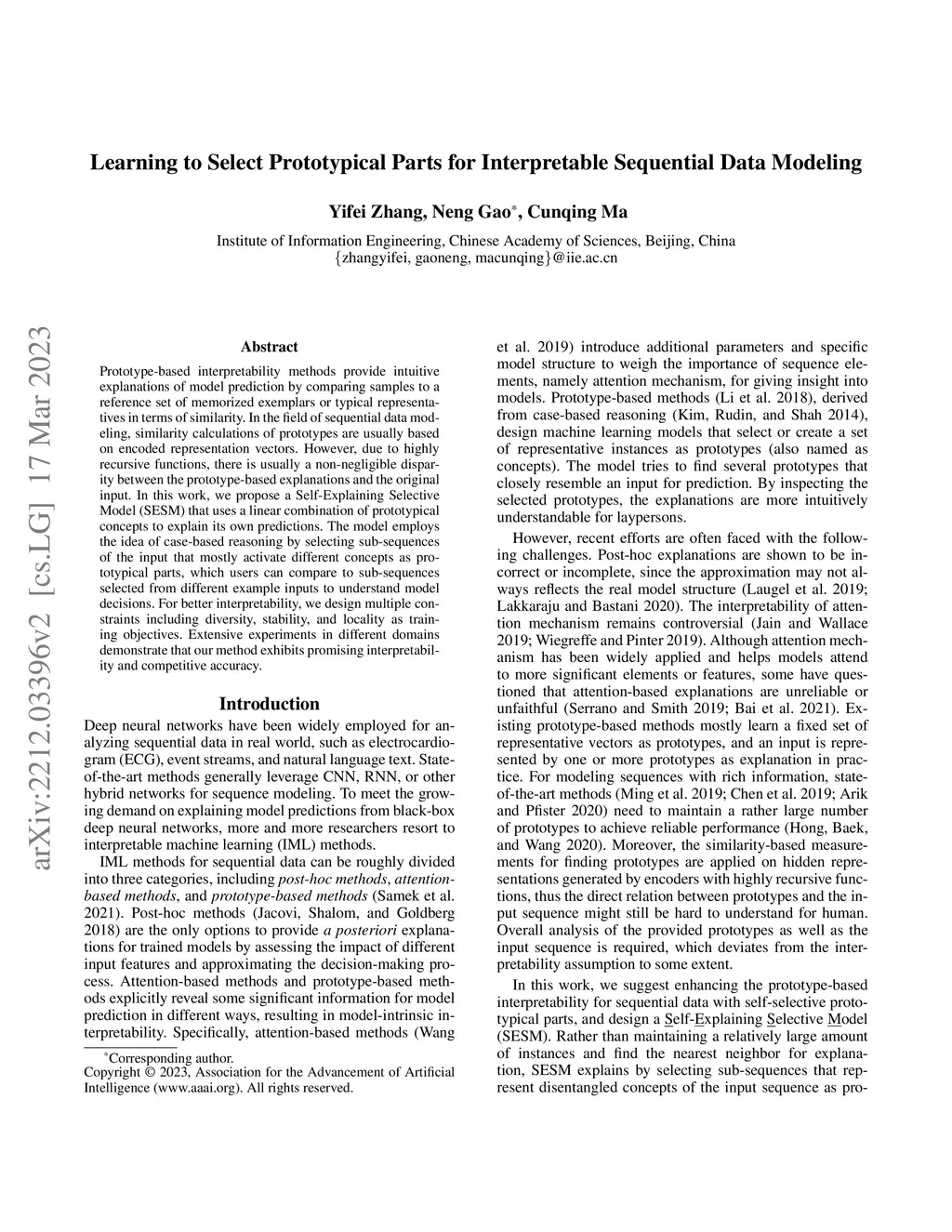 Learning to Select Prototypical Parts for Interpretable Sequential Data