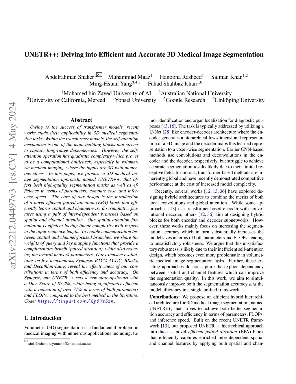 UNETR++: Delving into Efficient and Accurate 3D Medical Image