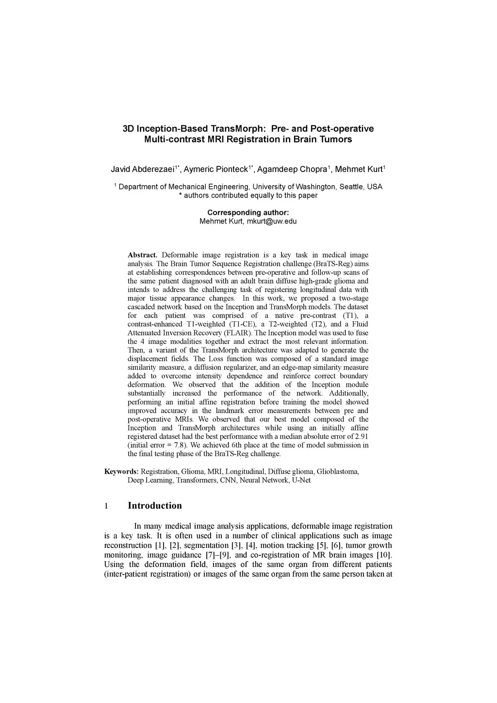 3D Inception-Based TransMorph: Pre- and Post-operative Multi-contrast
