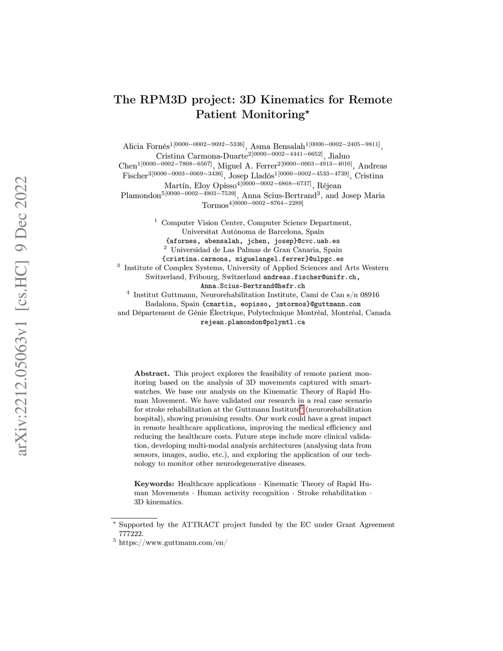 The RPM3D project: 3D Kinematics for Remote Patient Monitoring