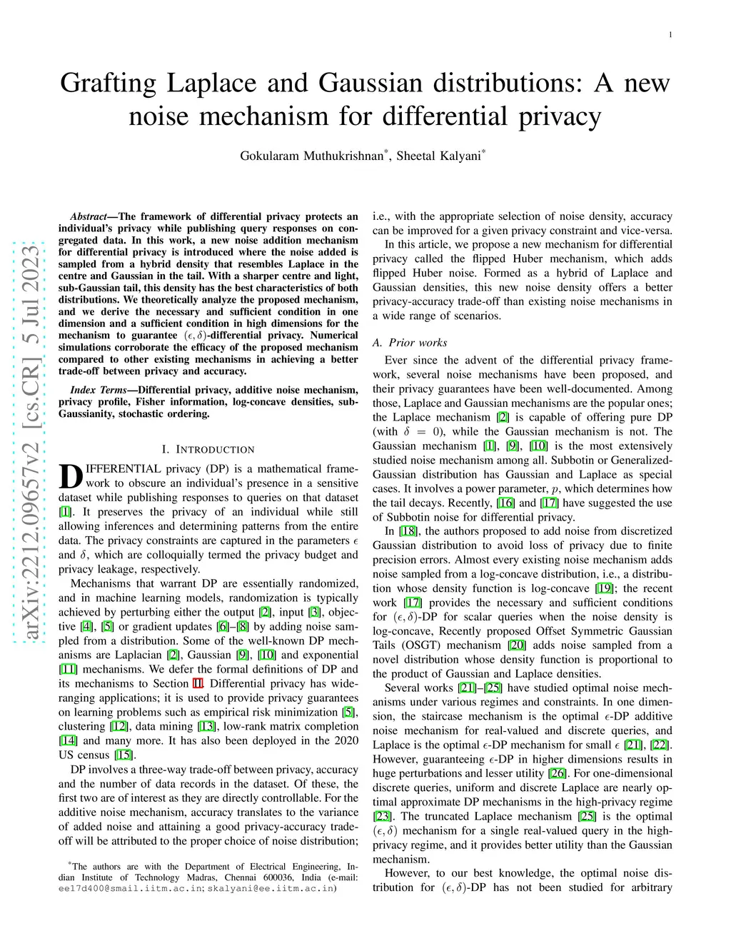 Grafting Laplace and Gaussian distributions: A new noise mechanism for