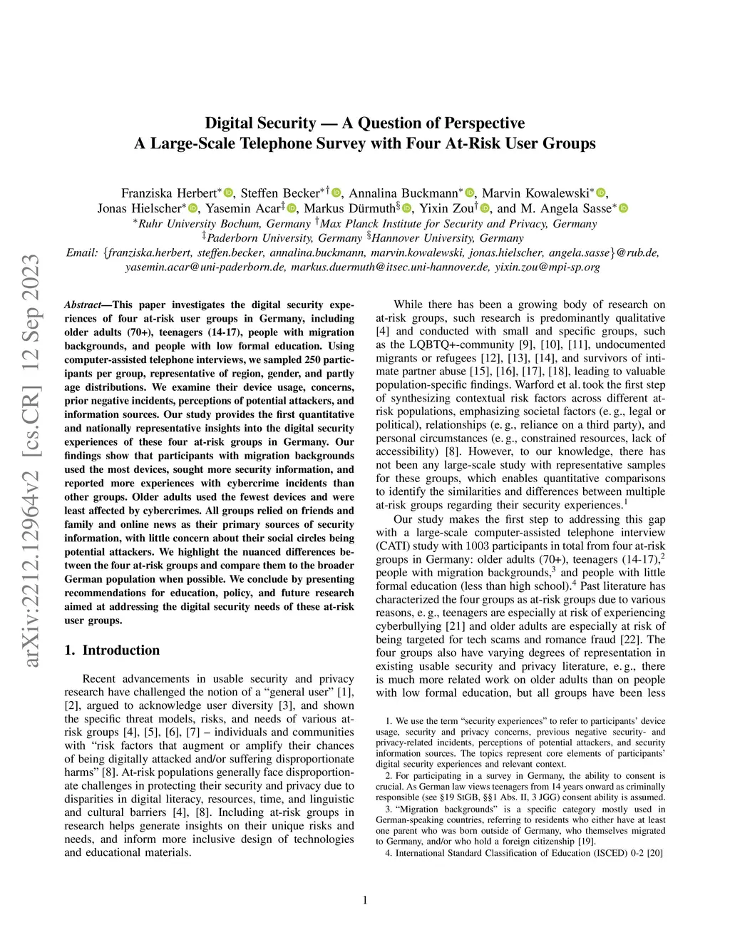 Digital Security -- A Question of Perspective. A Large-Scale Telephone