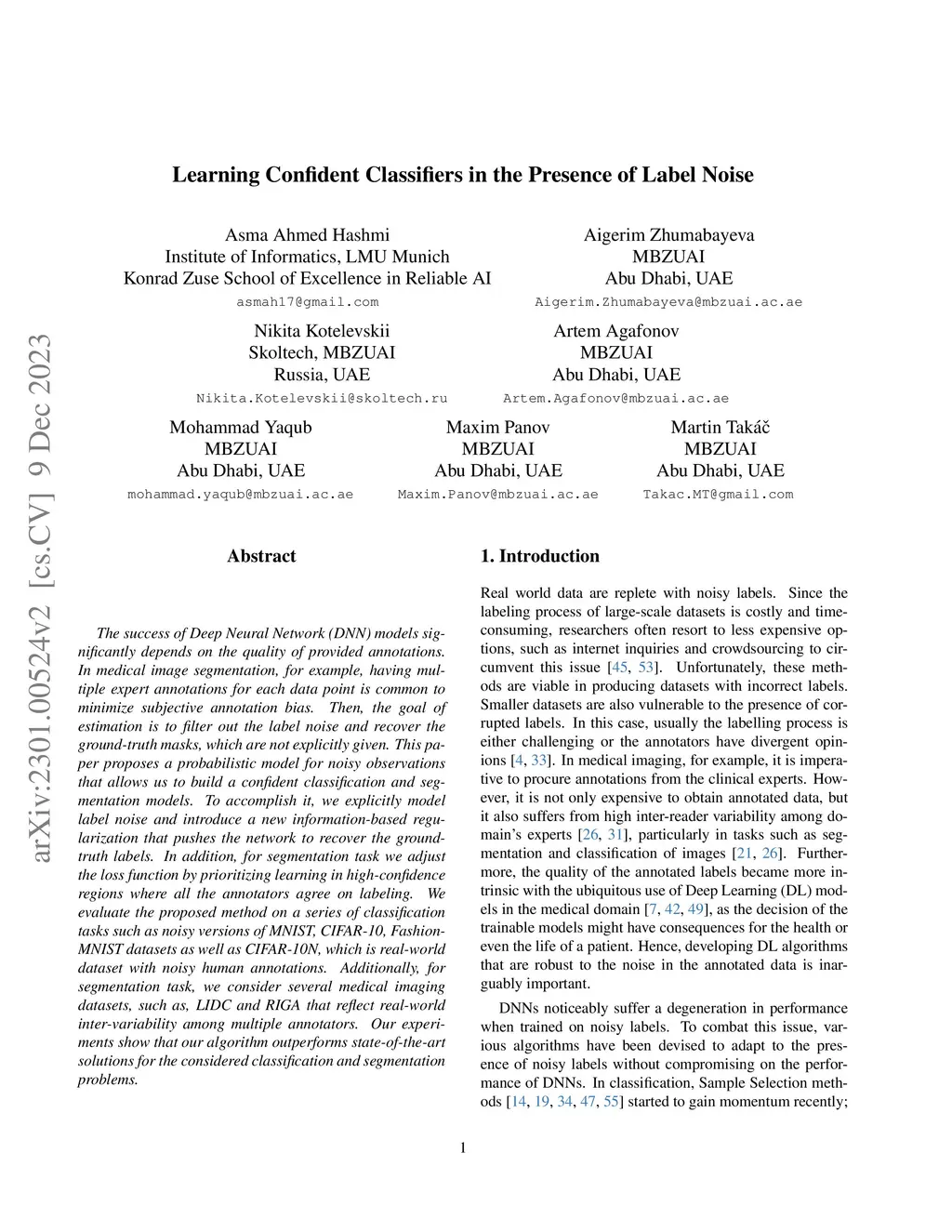 The success of Deep Neural Network (DNN) models significantly depends on the quality of provided annotations. In medical image segmentation, for example, having multiple expert annotations for each data point is common to minimize subjective annotation bias. Then, the goal of estimation is to filter out the label noise and recover the ground-truth masks, which are not explicitly given. This paper proposes a probabilistic model for noisy observations that allows us to build a confident classification and segmentation models. To accomplish it, we explicitly model label noise and introduce a new information-based regularization that pushes the network to recover the ground-truth labels. In addition, for segmentation task we adjust the loss function by prioritizing learning in high-confidence regions where all the annotators agree on labeling. We evaluate the proposed method on a series of classification tasks such as noisy versions of MNIST, CIFAR-10, Fashion-MNIST datasets as well as CIFAR-10N, which is real-world dataset with noisy human annotations. Additionally, for segmentation task, we consider several medical imaging datasets, such as, LIDC and RIGA that reflect real-world inter-variability among multiple annotators. Our experiments show that our algorithm outperforms state-of-the-art solutions for the considered classification and segmentation problems.