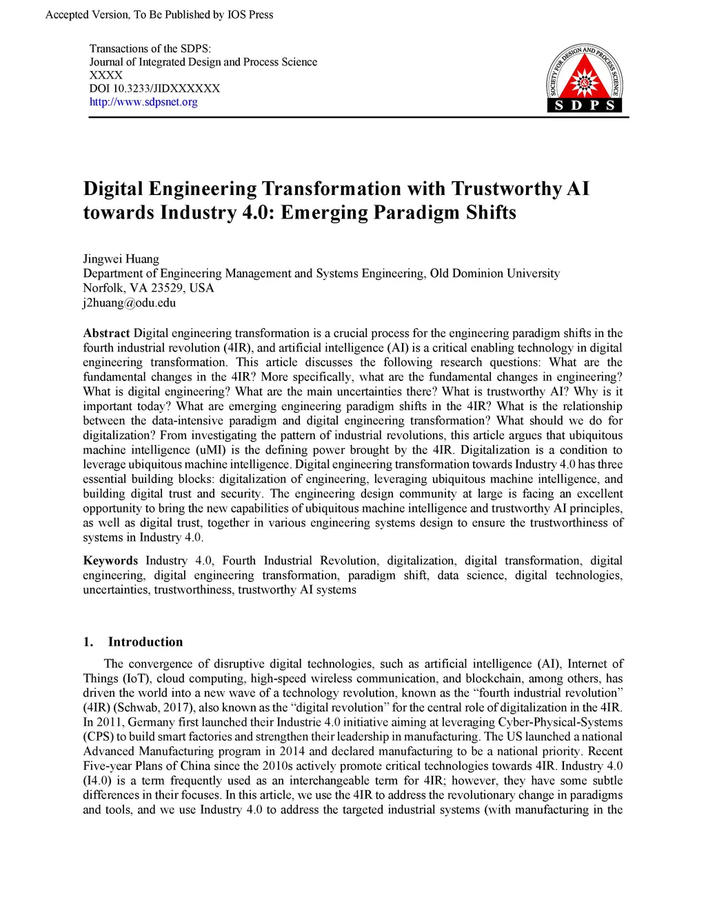 Digital Engineering Transformation with Trustworthy AI towards Industry