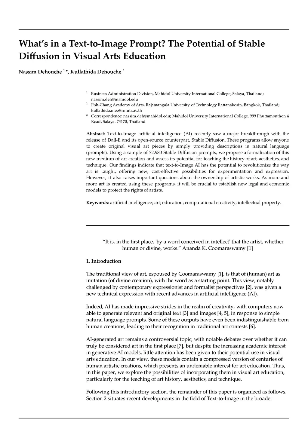 Text-to-Image artificial intelligence (AI) recently saw a major breakthrough with the release of Dall-E and its open-source counterpart, Stable Diffusion. These programs allow anyone to create original visual art pieces by simply providing descriptions in natural language (prompts). Using a sample of 72,980 Stable Diffusion prompts, we propose a formalization of this new medium of art creation and assess its potential for teaching the history of art, aesthetics, and technique. Our findings indicate that text-to-Image AI has the potential to revolutionize the way art is taught, offering new, cost-effective possibilities for experimentation and expression. However, it also raises important questions about the ownership of artistic works. As more and more art is created using these programs, it will be crucial to establish new legal and economic models to protect the rights of artists.