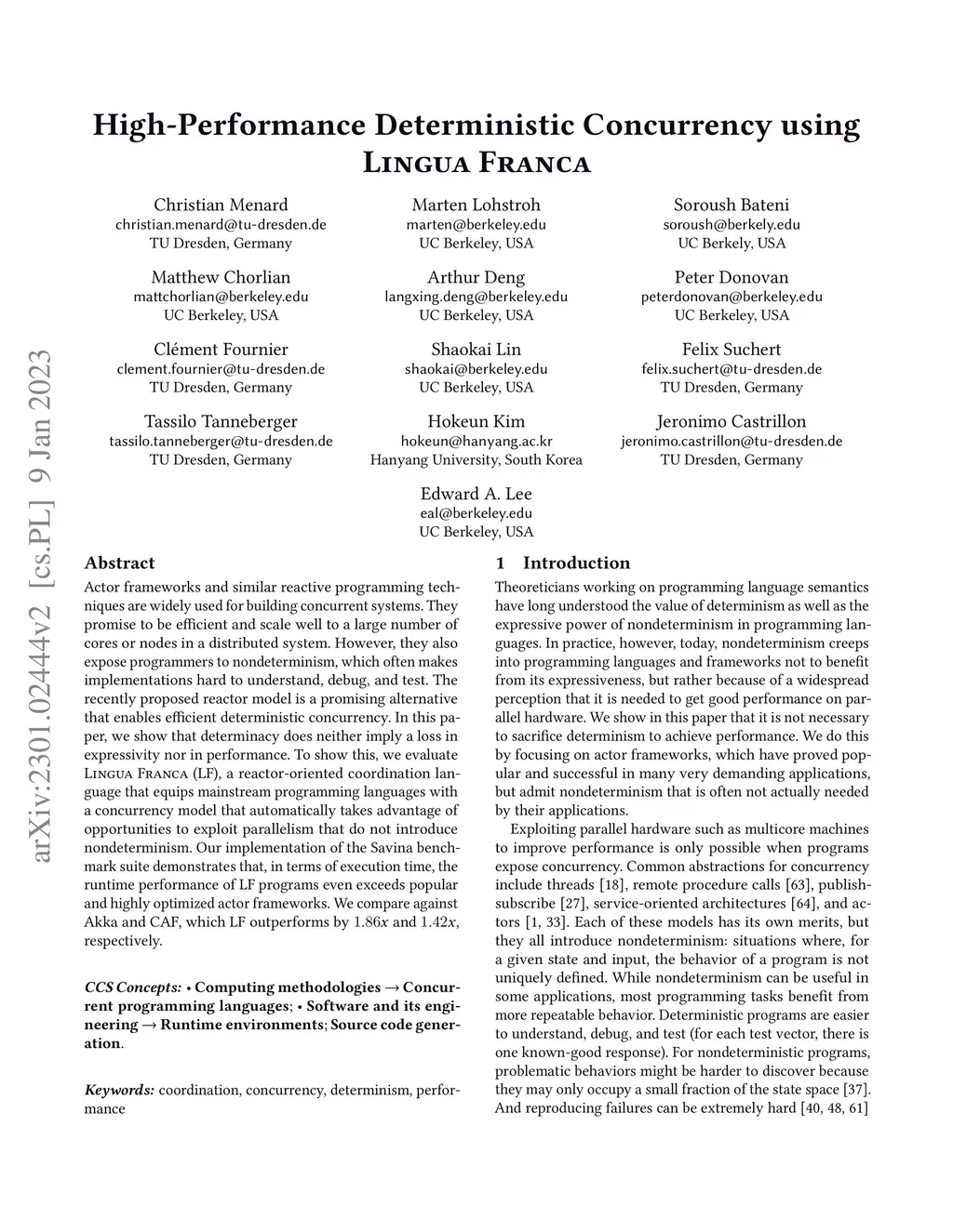 High-Performance Deterministic Concurrency using Lingua Franca