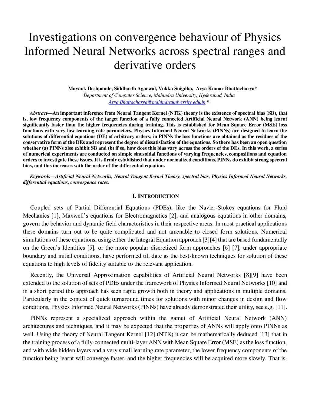 An important inference from Neural Tangent Kernel (NTK) theory is the existence of spectral bias (SB), that is, low frequency components of the target function of a fully connected Artificial Neural Network (ANN) being learnt significantly faster than the higher frequencies during training. This is established for Mean Square Error (MSE) loss functions with very low learning rate parameters. Physics Informed Neural Networks (PINNs) are designed to learn the solutions of differential equations (DE) of arbitrary orders; in PINNs the loss functions are obtained as the residues of the conservative form of the DEs and represent the degree of dissatisfaction of the equations. So there has been an open question whether (a) PINNs also exhibit SB and (b) if so, how does this bias vary across the orders of the DEs. In this work, a series of numerical experiments are conducted on simple sinusoidal functions of varying frequencies, compositions and equation orders to investigate these issues. It is firmly established that under normalized conditions, PINNs do exhibit strong spectral bias, and this increases with the order of the differential equation.