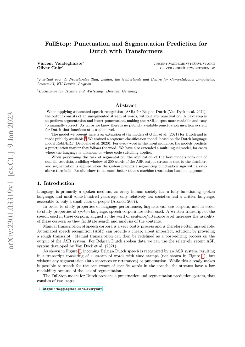 FullStop:Punctuation and Segmentation Prediction for Dutch with