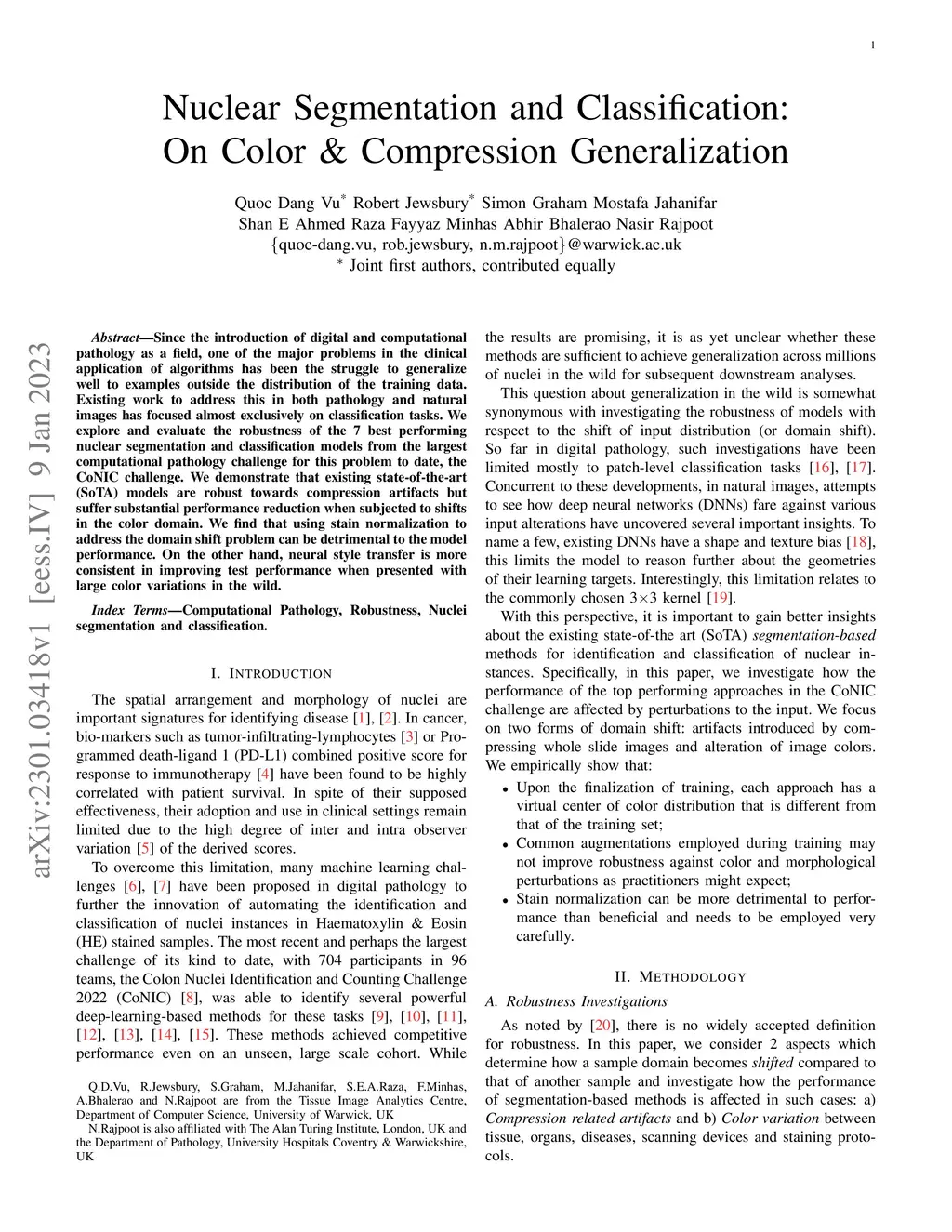 Nuclear Segmentation and Classification: On Color & Compression