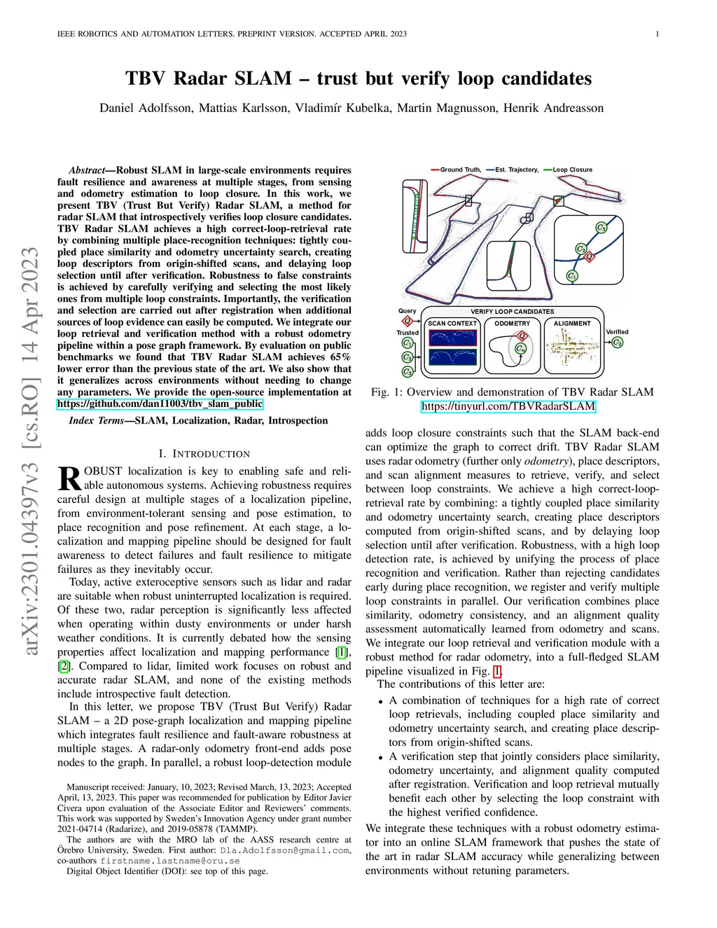 TBV Radar SLAM -- trust but verify loop candidates