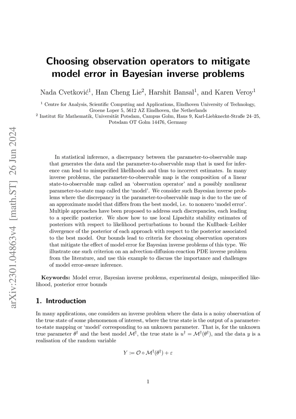In statistical inference, a discrepancy between the parameter-to-observable map that generates the data and the parameter-to-observable map that is used for inference can lead to misspecified likelihoods and thus to incorrect estimates. In many inverse problems, the parameter-to-observable map is the composition of a linear state-to-observable map called an `observation operator' and a possibly nonlinear parameter-to-state map called the `model'. We consider such Bayesian inverse problems where the discrepancy in the parameter-to-observable map is due to the use of an approximate model that differs from the best model, i.e. to nonzero `model error'. Multiple approaches have been proposed to address such discrepancies, each leading to a specific posterior. We show how to use local Lipschitz stability estimates of posteriors with respect to likelihood perturbations to bound the Kullback--Leibler divergence of the posterior of each approach with respect to the posterior associated to the best model. Our bounds lead to criteria for choosing observation operators that mitigate the effect of model error for Bayesian inverse problems of this type. We illustrate one such criterion on an advection-diffusion-reaction PDE inverse problem from the literature, and use this example to discuss the importance and challenges of model error-aware inference.
