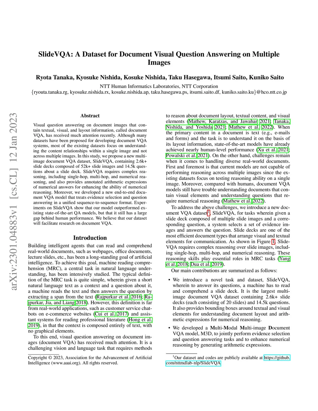 SlideVQA: A Dataset for Document Visual Question Answering on Multiple