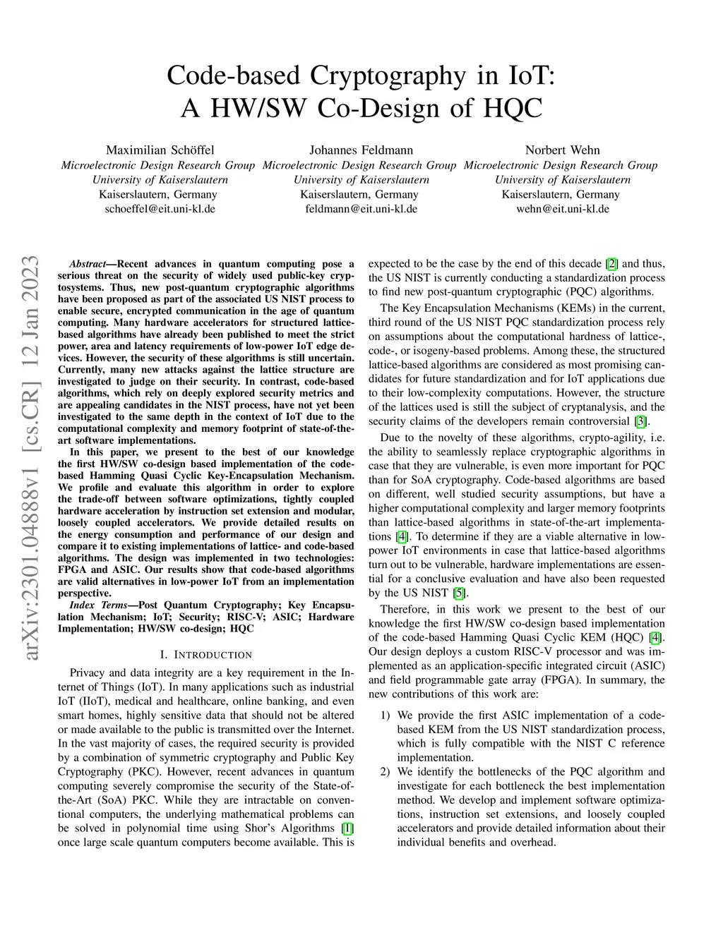 Code-based Cryptography in IoT: A HW/SW Co-Design of HQC