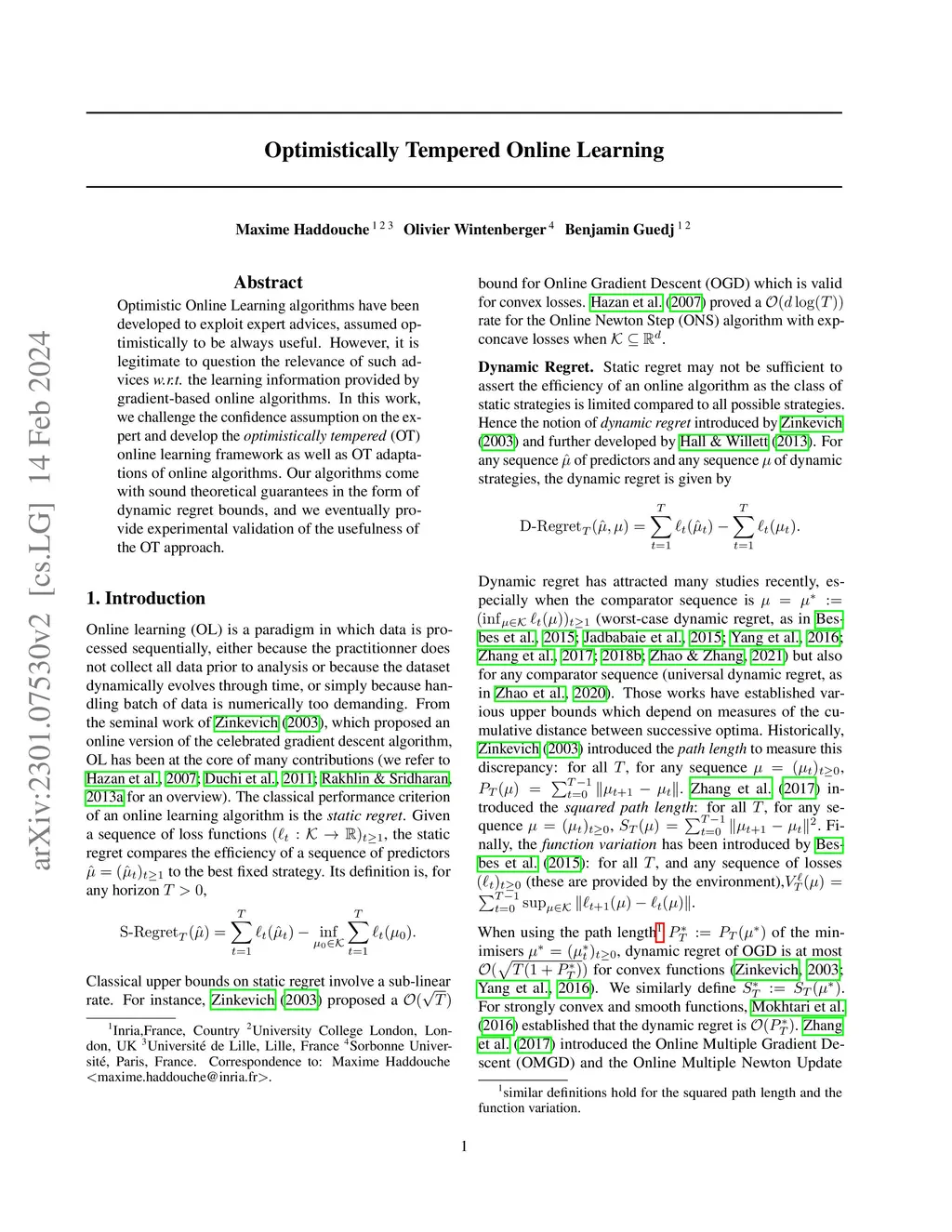 Online (Non-)Convex Learning via Tempered Optimism