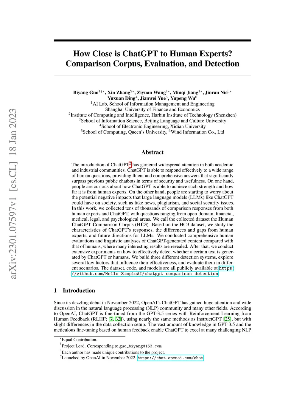 The introduction of ChatGPT has garnered widespread attention in both academic and industrial communities. ChatGPT is able to respond effectively to a wide range of human questions, providing fluent and comprehensive answers that significantly surpass previous public chatbots in terms of security and usefulness. On one hand, people are curious about how ChatGPT is able to achieve such strength and how far it is from human experts. On the other hand, people are starting to worry about the potential negative impacts that large language models (LLMs) like ChatGPT could have on society, such as fake news, plagiarism, and social security issues. In this work, we collected tens of thousands of comparison responses from both human experts and ChatGPT, with questions ranging from open-domain, financial, medical, legal, and psychological areas. We call the collected dataset the Human ChatGPT Comparison Corpus (HC3). Based on the HC3 dataset, we study the characteristics of ChatGPT's responses, the differences and gaps from human experts, and future directions for LLMs. We conducted comprehensive human evaluations and linguistic analyses of ChatGPT-generated content compared with that of humans, where many interesting results are revealed. After that, we conduct extensive experiments on how to effectively detect whether a certain text is generated by ChatGPT or humans. We build three different detection systems, explore several key factors that influence their effectiveness, and evaluate them in different scenarios. The dataset, code, and models are all publicly available at https://github.com/Hello-SimpleAI/chatgpt-comparison-detection.