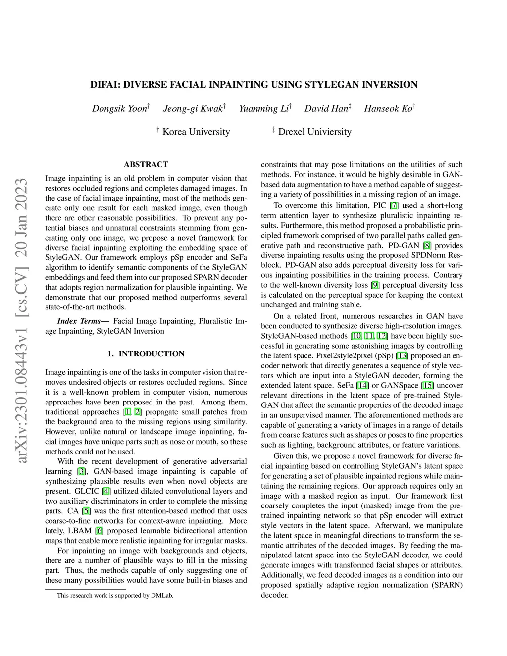 DIFAI: Diverse Facial Inpainting using StyleGAN Inversion