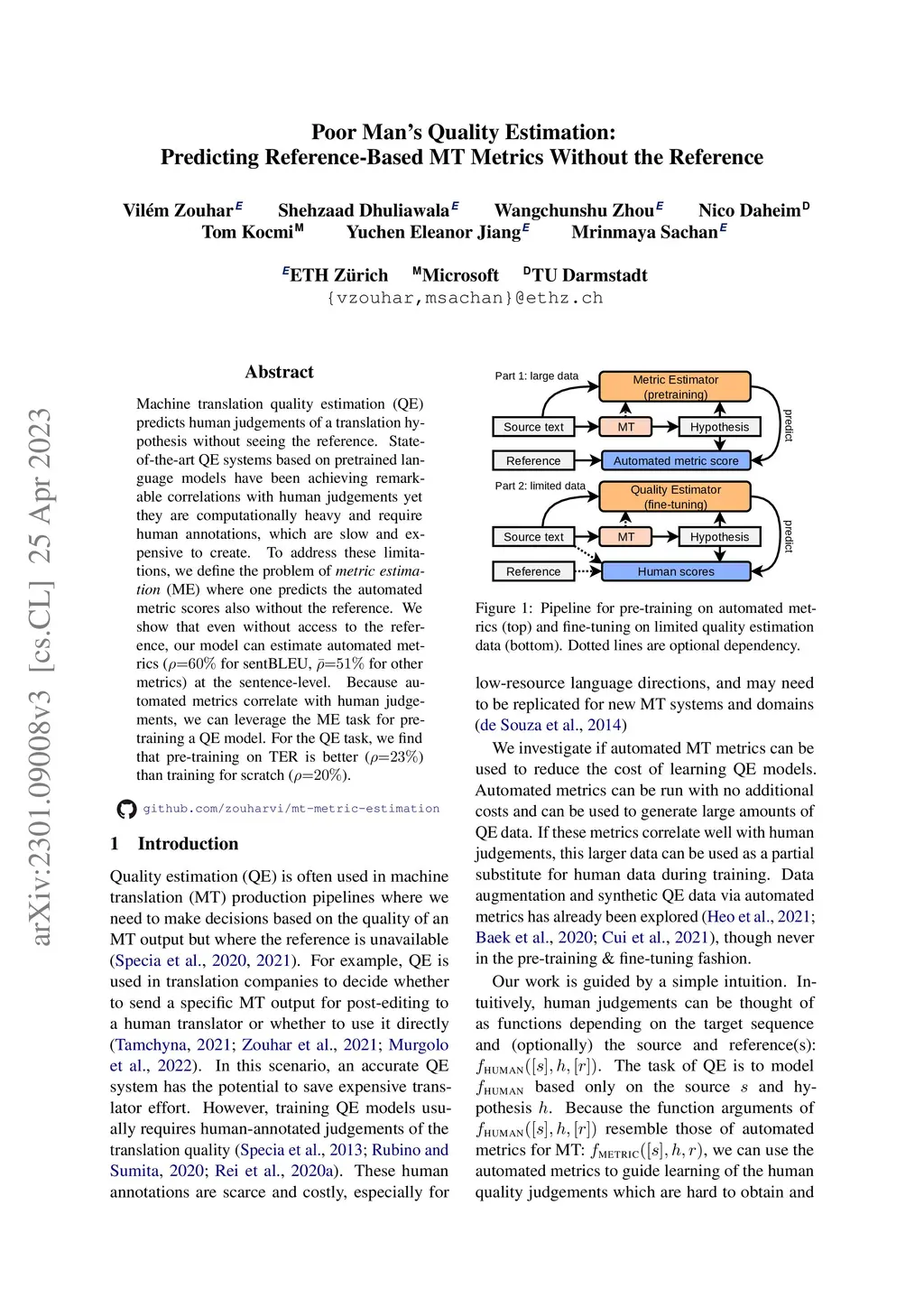 Poor Man's Quality Estimation: Predicting Reference-Based MT Metrics