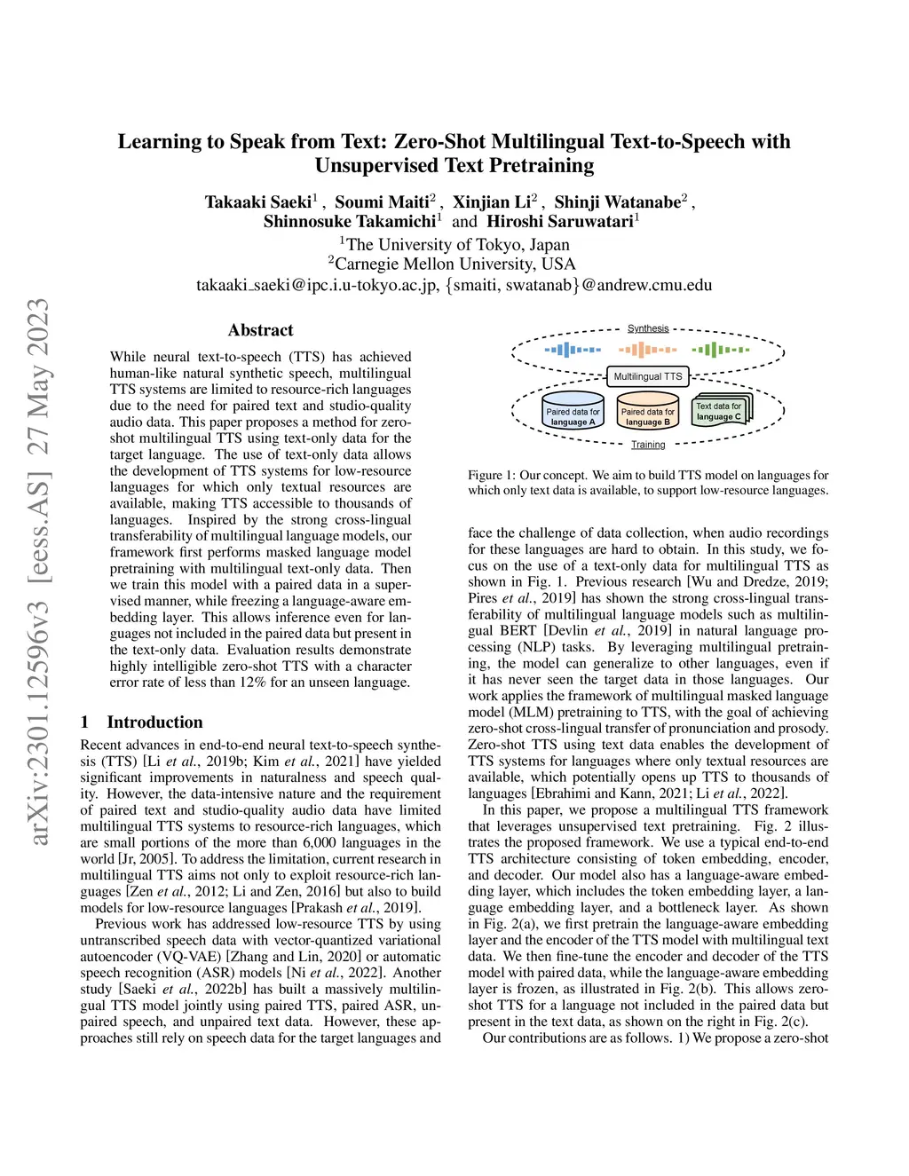 Learning to Speak from Text: Zero-Shot Multilingual Text-to-Speech with