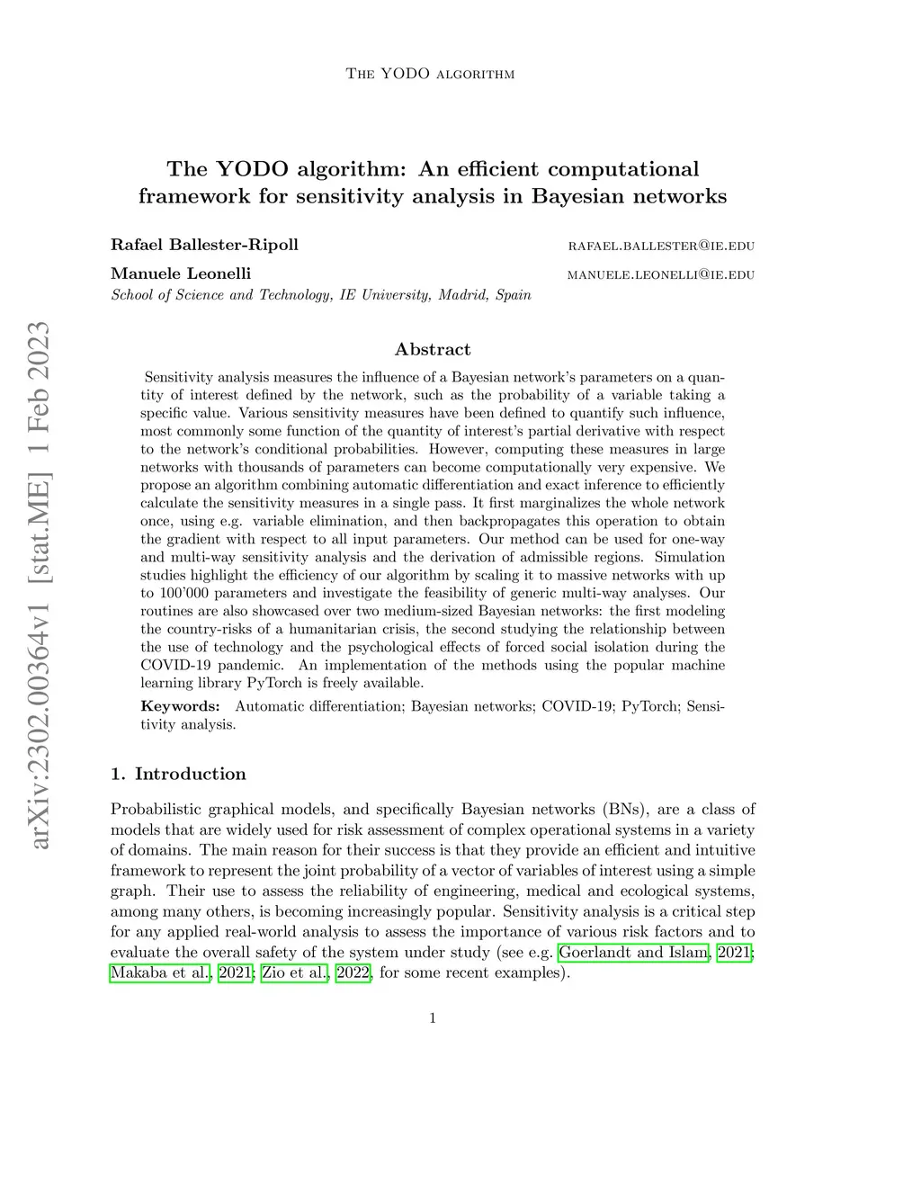 The YODO algorithm: An efficient computational framework for sensitivity