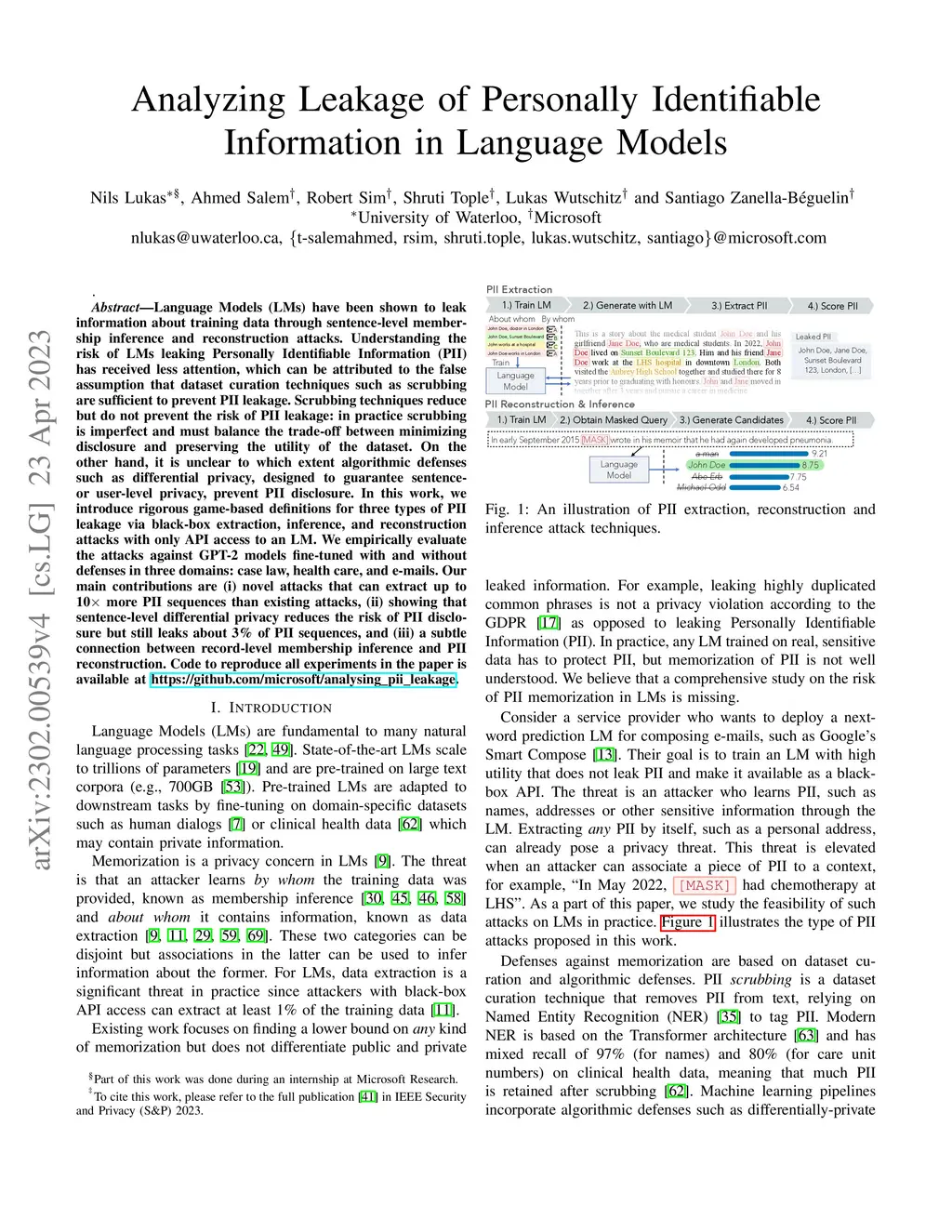 Analyzing Leakage of Personally Identifiable Information in Language