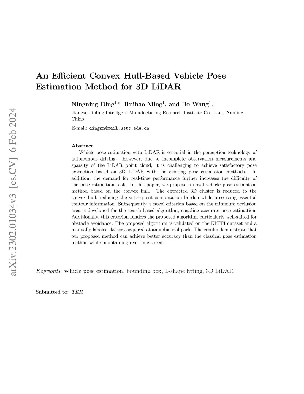 An Efficient Convex Hull-based Vehicle Pose Estimation Method for 3D