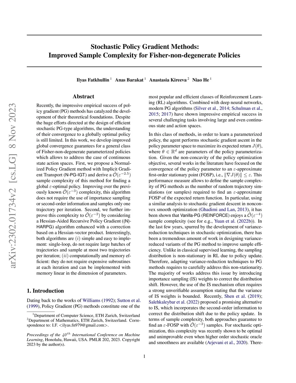 Stochastic Policy Gradient Methods: Improved Sample Complexity for