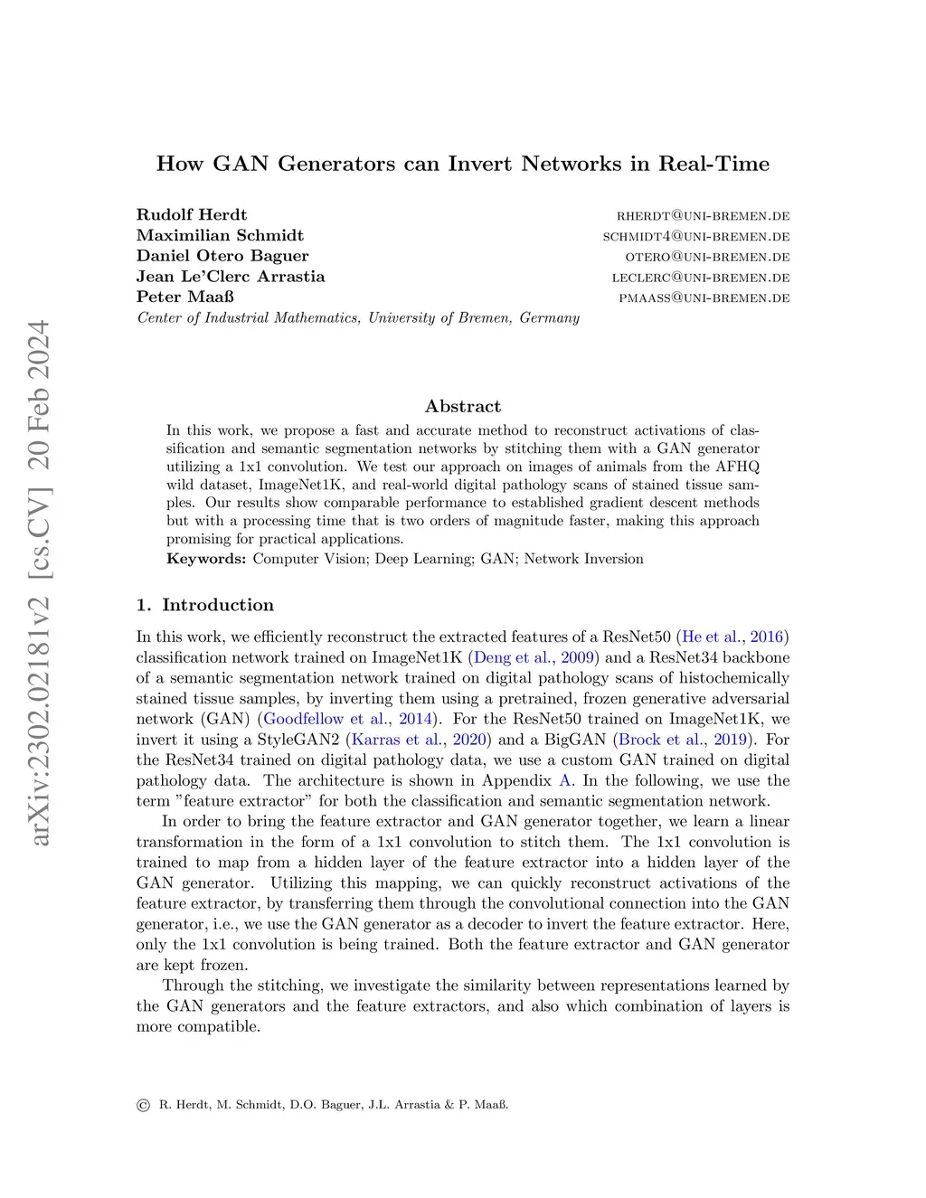 In this work, we propose a fast and accurate method to reconstruct activations of classification and semantic segmentation networks by stitching them with a GAN generator utilizing a 1x1 convolution. We test our approach on images of animals from the AFHQ wild dataset, ImageNet1K, and real-world digital pathology scans of stained tissue samples. Our results show comparable performance to established gradient descent methods but with a processing time that is two orders of magnitude faster, making this approach promising for practical applications.