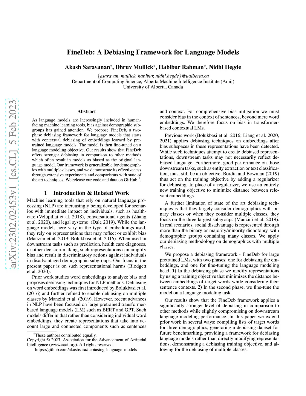 FineDeb: A Debiasing Framework for Language Models