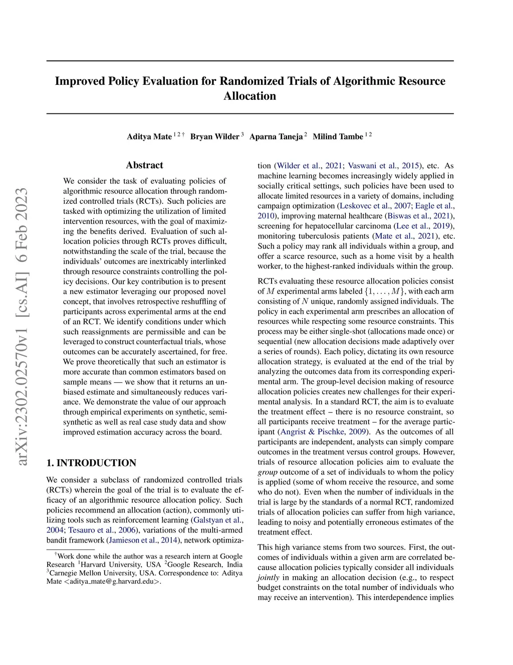 Improved Policy Evaluation for Randomized Trials of Algorithmic Resource