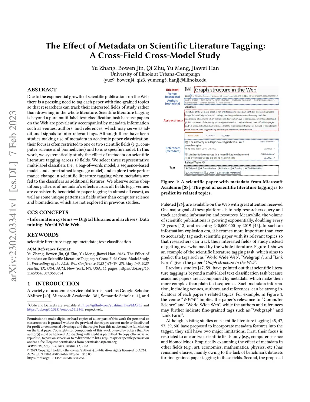 The Effect of Metadata on Scientific Literature Tagging: A Cross-Field