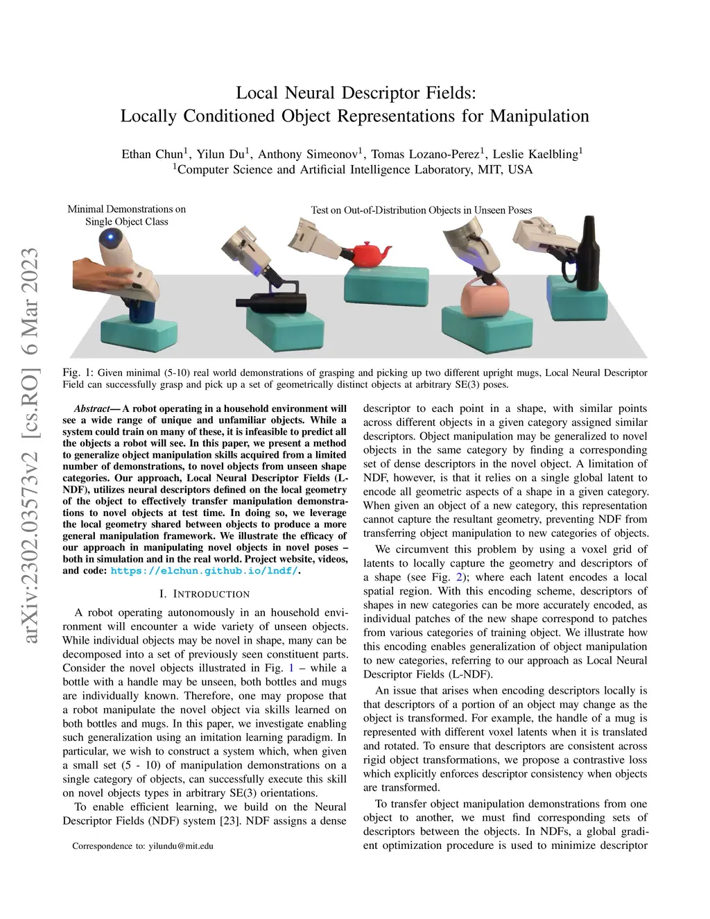 Local Neural Descriptor Fields: Locally Conditioned Object