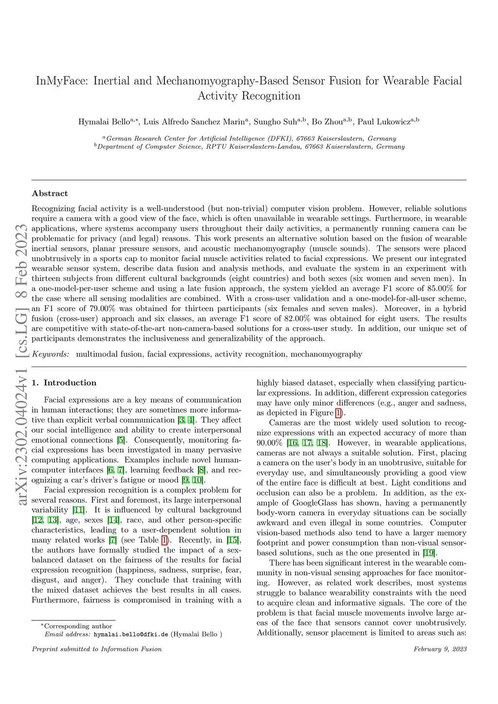 InMyFace: Inertial and Mechanomyography-Based Sensor Fusion for Wearable