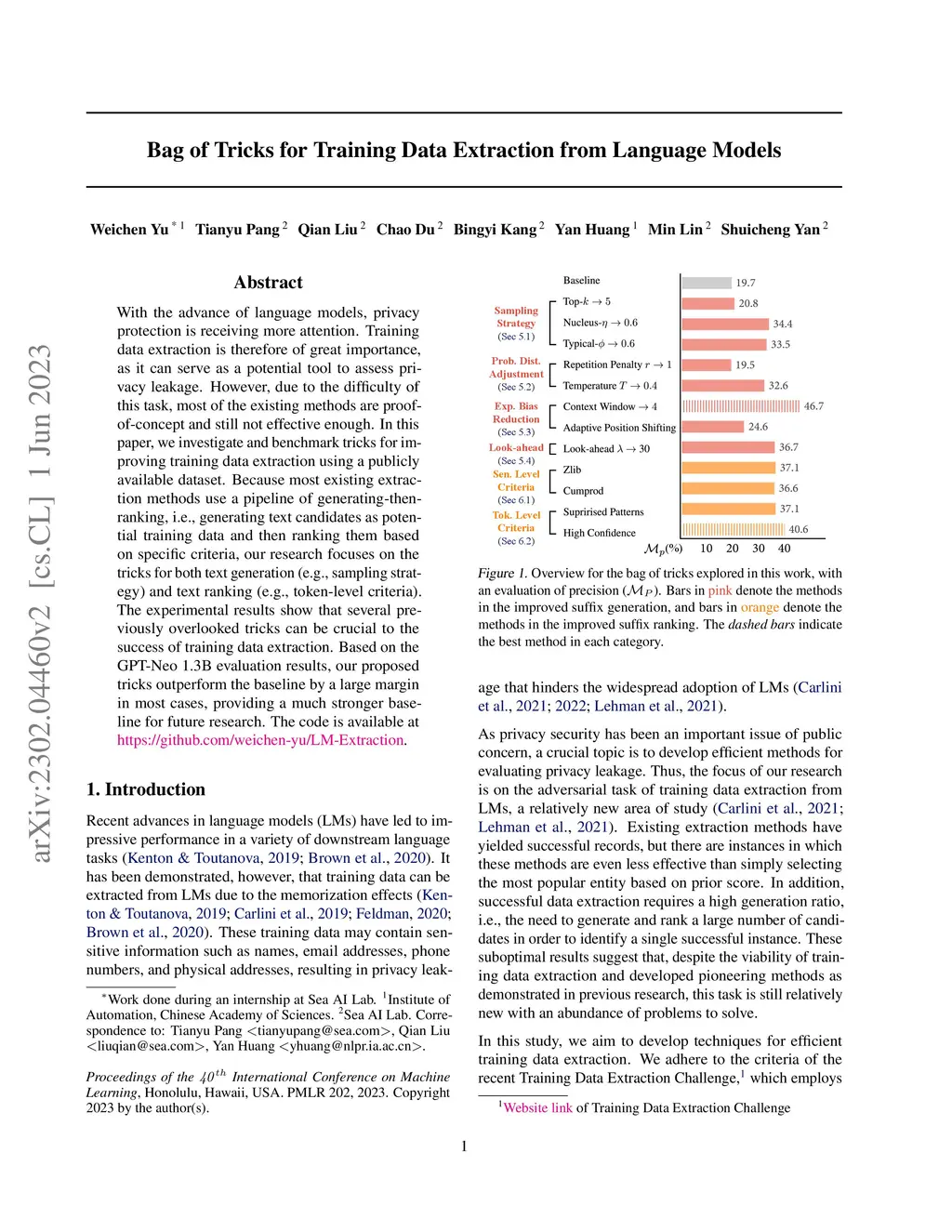 Bag of Tricks for Training Data Extraction from Language Models